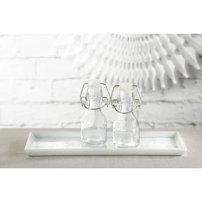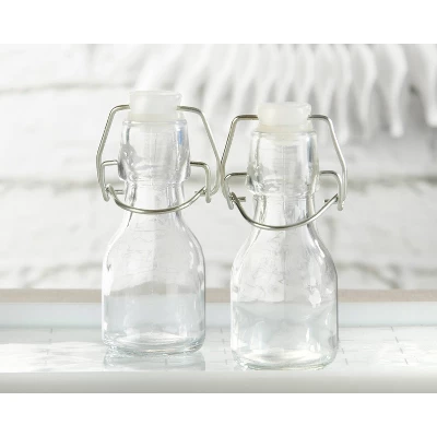 Create unique wedding favors with the Mini Glass Favor Bottle with Swing Top from Kate Aspen. Each clear glass bottle comes with a white stopper held in place by silver-finished hinges anchored into the top of the bottleneck. Fill with sand and seashells for your beach wedding, or add a mix of wildflower seeds they can plant in the spring.