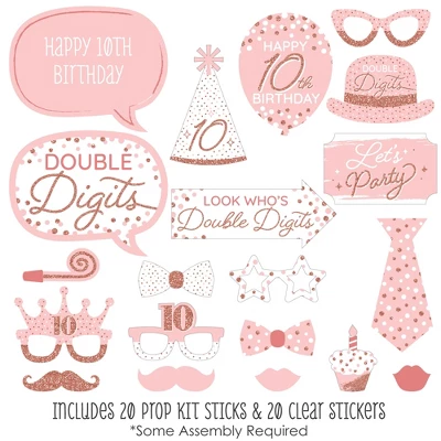 Big Dot Of Happiness 10th Pink Rose Gold Birthday – Happy Birthday Party Photo Booth Props Kit – 20 Count