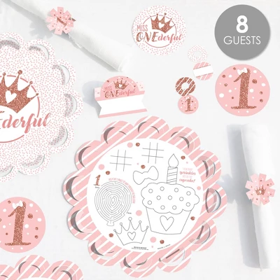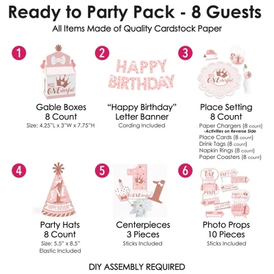 Big Dot Of Happiness 1st Birthday Little Miss Onederful – Girl First Happy Birthday Party Supplies Kit – Ready To Party Pack – 8 Guests