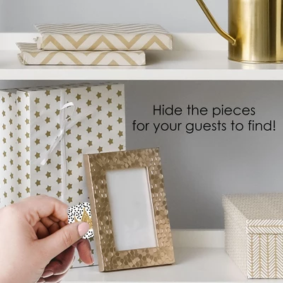 1st Birthday Little Mr Onederful Hide and Find Game INCLUDES 1 sign with a built-in stand and 48 hexagon game pieces that you can hide for an exhilarating scavenger hunt at your Boy First Birthday Party. Easy Assembly: 1st Birthday Little Mr Onederful game sign comes with built-in stand and requires some easy DIY assembly. To display your sign, fold the sides of the stand towards the center. Then, fold down the support piece of the stand until it rests in the notches. How To Play: Hide and find game sign shows the design of each hexagon piece, so display on a table where everyone can see. Then, find creative places to hide the game pieces around your venue. Finally, send your guests to hunt for the pieces. Whoever finds the most pieces wins! For a twist, divide the guests into teams and assign each team a piece to hunt for. High-Quality Supply: Black and Gold Themed Hide and Find Game is professionally printed double-sided on heavy-duty cardstock paper with a photo-like shine. Sign measures 7.5” wide by 11” tall and hexagon pieces measure 2.25” wide by 2.25” tall. Made In The USA: 1st Birthday Little Mr Onederful Hide and Find Game is designed and manufactured at our Wisconsin facility using materials that are Made in the USA. 1st Birthday Little Mr Onederful Hide and Find Game uses a No-Mess Glitter Print: Our game is designed with a printed image of glitter, eliminating glitter flake while maximizing bling effect!