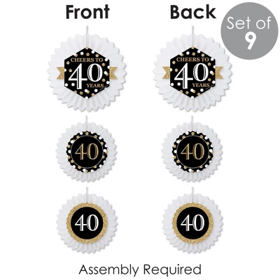 Adult 40th Celebration Paper Fans INCLUDES 9 Paper Fans, 18 Shaped Cut-Outs, and Assembly Stickers. Easy set up with all the necessary items included. These decorative fans will surely make your next 40th Birthday or Anniversary Party memorable. FESTIVE FUN: “Cheers To 40 Years” Paper Fans Tissue Decoration Kit are versatile in use for any 40th Birthday or Anniversary Party. You can hang them from the ceiling, on the walls, or over a mantelpiece. EASY DIY ASSEMBLY: Adult 40th Celebration Paper Fans require some assembly before use. Start by removing the plastic strip from the tape. Unfold the fan, pressing its two ends together firmly to form a circle. Adhere a shaped cut-out using assembly stickers in the center. Use the attached string to hang the decoration. PREMIUM DECOR: Shaped cut-outs featured in the “Cheers To 40 Years” Paper Fans Tissue Decoration Kit are professionally printed on heavy-duty paper with a photo-like shine. All items are individually inspected and carefully packaged. Fans arrive flat and require easy assembly. MADE IN THE USA: Adult 40th Celebration Paper Fans are designed and manufactured at our Wisconsin facility using materials that are Printed in the USA – Fans Made in China. Adult 40th Celebration Paper Fans use a No-Mess Glitter Print: Our Cut-Outs are designed with a printed image of glitter, eliminating glitter flake while maximizing bling effect!