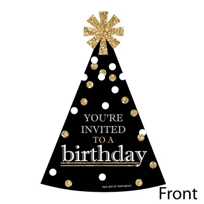 Adult Happy Birthday – Gold Fill-In the Blank Invitation Set INCLUDES 12 cone hat party invitations and 12 premium white envelopes. Adult Happy Birthday – Gold fill-in invitations are perfect for any event. The black and gold theme are great for a birthday party. Adult Happy Birthday – Gold party invitations SIZE 5 inches by 7 inches. The included envelopes measure 5 inches by 7 inches. The back of each Adult Happy Birthday – Gold party invitation has space to add your party details: For: Date: Time: Place: Given By: RSVP: PREMIUM PARTY INVITATIONS: Cone hat party invitations are professionally printed on heavy-duty card stock paper with a photo-like shine. They are individually inspected, then carefully packaged with our exclusive squiggle flap envelopes, making this Adult Happy Birthday – Gold stationary set a must-have for any birthday party. MADE IN THE USA: Adult Happy Birthday – Gold – Birthday Party Shaped Invitations are designed and manufactured at our Wisconsin facility using materials that are Made in the USA. Adult Happy Birthday Fill-In Invitations use a No-Mess Glitter Print: Our invitations are designed with a printed image of glitter, eliminating glitter flake while maximizing bling effect!