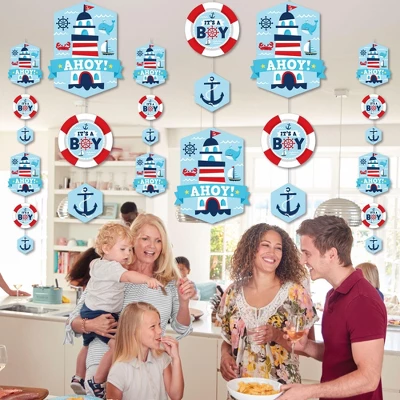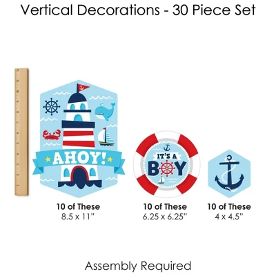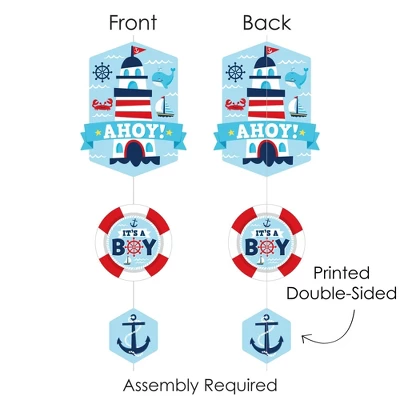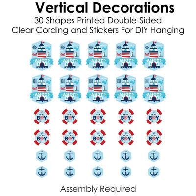 Ahoy It’s a Boy Hanging Vertical Decorations INCLUDE 30 shaped pieces, 1 roll clear cording, and assembly stickers. Ahoy It’s a Boy Vertical Decorations are fun and versatile party danglers for your next Baby Shower. ROOMERIFIC: Ahoy It’s a Boy Hanging Vertical Decorations can be displayed at any lengths you choose and make an attractive backdrop for your next Baby Shower. Shaped pieces come in 3 sizes of 10 each, with the following specifications: 10 at 8.5 x 11 inches, 10 at 6.25 x 6.25 inches, and 10 at 4 x 4.5 inches. Hang near a wall to capture fun group photos, or place throughout the room to create a unified theme. They look amazing when coordinated above gift and buffet tables. DIY DONE RIGHT: Get ready for guests in a snap with this colorful, easy-to-assemble, 30-piece Ahoy It’s a Boy Hanging Party Decorations kit. Printed double-sided, each shaped piece includes top and bottom tabs for easy hanging. Simply interlock clear cording into each piece and secure with provided clear stickers. HIGH-QUALITY DECOR: Ahoy It’s a Boy Hanging Vertical Decorations are professionally printed on heavy-duty cardstock paper. Each piece is individually inspected and carefully packaged by hand. Requires some simple do-it-yourself assembly. Use provided clear cording to display decorations however you prefer. MADE IN THE USA: Ahoy It’s a Boy Hanging Vertical Decorations are designed and manufactured at our Wisconsin facility using materials that are Made in the USA.