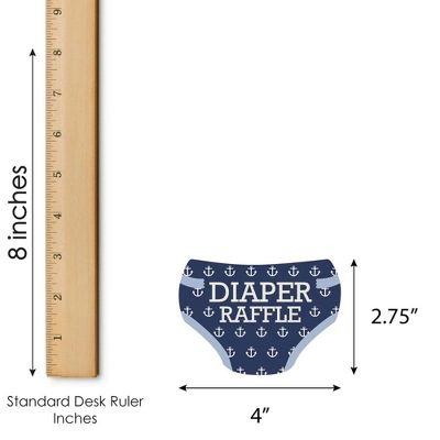 Ahoy – Nautical – Diaper Shaped Raffle Ticket Inserts INCLUDES 24 cards with instructions for a diaper raffle game and space for guests to write their name. FUN BABY SHOWER GAME: Baby Shower guests will love playing a diaper raffle – it’s easy to do and helps Mommy-to-Be stock up on diapers before her baby arrives. Diaper raffle tickets are a great addition to any baby shower invitations. Add them to invites for traditional baby shower or a baby sprinkle, give them to Dad’s friends for a diaper party or host an event with coworkers. HOW TO PLAY: Add a Diaper Raffle Ticket to each baby shower invitation, telling guests to bring one package of diapers and the Diaper Raffle Ticket with their name on it. At the shower, have a basket at the gift table and have guests to drop their Diaper Raffle Tickets into it. Have a drawing for the prize winner. You can have one grand prize winner or numerous little ones. Either way, a diaper raffle is a fun way to get everyone in on the games and an easy way to get the parents ready for baby! HIGH-QUALITY PARTY SUPPLIES: Diaper Shaped Raffle Ticket Inserts are professionally printed on heavy-duty cardstock paper with a photo-like shine. They are individually inspected and carefully packaged by hand. This fun baby shower or gender reveal party game will arrive ready to use at your party. Each diaper shaped raffle ticket measures 4″ wide x 2.75″ tall. MADE IN THE USA: Ahoy – Nautical – Diaper Shaped Raffle Ticket Inserts – Baby Shower Game is designed and manufactured at our Wisconsin facility using materials that are Made in the USA.