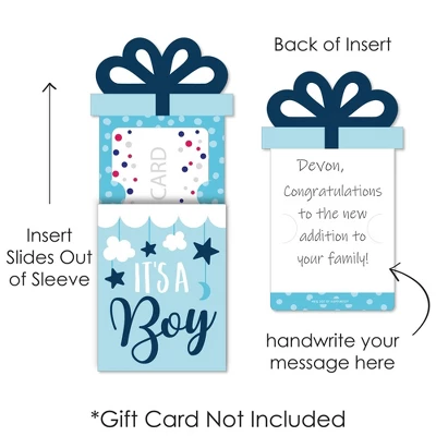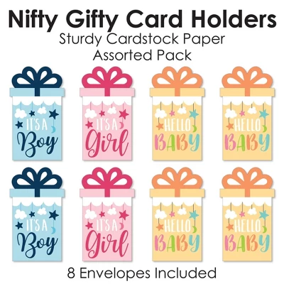 Assorted Baby Nifty Gifty Card Holders INCLUDES: 8 professionally printed gift card holders plus 8 premium white envelopes. Each card holder fits a standard gift card or cash. UNIQUE GIFT IDEA: Assorted Baby Nifty Gifty Card Holders are a trendy and fun way to give gift cards or money. In addition, each card holder insert has space for writing a personal message to your card recipients, making gift-giving convenient and easy! Whether you’re mailing a gift or attending a baby shower, these card holders are a great way to show how much you care! PERFECT FIT: Each Assorted Baby Nifty Gifty Card Holder is approximately 4 inches x 5.5 inches in SIZE and fits a standard 3.5-inch x 2-inch gift card. Simply pull the insert up and out of the card holder sleeve, locate the pre-cut tabs on the insert, and place money or a gift card into the tabs. PREMIUM GIFT CARD HOLDERS: Assorted Baby Nifty Gifty Card Holders are double-sided and professionally printed on sturdy cardstock paper with a photo-like shine. They are individually inspected and carefully packaged with high-quality white envelopes, making these card holders must-haves for all your upcoming events. Gift cards not included. MADE IN THE USA: Assorted Baby Nifty Gifty Card Holders are designed and manufactured at our Wisconsin facility using materials that are Made in the USA.