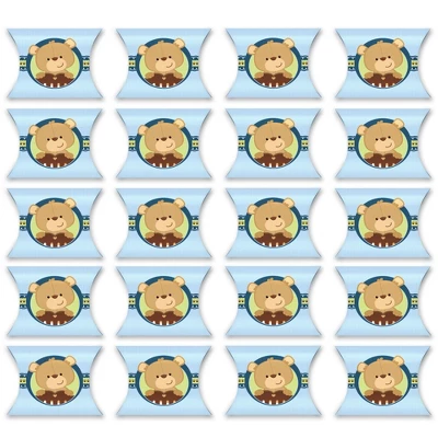 Baby Boy Teddy Bear Petite Pillow Boxes INCLUDES 20 decorative boxes. Boxes arrive flat and require some easy assembly. Blue Bear petite gift boxes come in a mini size, perfect for a Baby Shower. FUN SIZE: Baby Boy Teddy Bear Petite Pillow Boxes are SIZE 4 inches long x 3 inches wide. When fully assembled, boxes have a 1.25-inch wide opening on each end with a depth of 2.75 inches. Great for all ages, these boxes are ideal for storing bite-sized candy, jewelry, and other miniature gifts. SUPER EASY ASSEMBLY: Blue Bear Petite Pillow Boxes require minimal assembly before use. Gently squeeze box open and fold one end, following numerical instructions inside each tab. Place gift inside or leave empty before folding the opposite end. PREMIUM GIFT BOXES: Baby Boy Teddy Bear Petite Pillow Boxes are professionally printed on heavy-duty paper with a photo-like shine. Boxes are hand-folded flat with ends left untouched for easy customer assembly. They are then individually inspected and carefully packaged. MADE IN THE USA: Baby Boy Teddy Bear Petite Pillow Boxes are designed and manufactured at our Wisconsin facility using materials that are Made in the USA.
