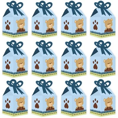 Bow Boxes INCLUDE: 12 Teddy Bear-themed square favor gift boxes. Each box SIZE measures 3.5 inches length x 3.5 inches width x 7 inches height. Bow boxes are ideal for small gifts and treats that are under 3.5 inches tall (height for storing items in closed box). When assembled and closed, each box creates a 3D paper bow-shaped top with a square bottom. CUTE GIFT BOXES: This small, closed favor box can be filled with homemade treats (fun cupcake box), party trinkets, or thank you gifts. At the party, have each guest fill their smiling brown Teddy Bear bow box with snacks from a candy buffet or use as a party loot box. Guests will have fun guessing what surprise each favor gift box contains. PREMIUM PARTY SUPPLY: Bow boxes are professionally printed and double-sided on heavy-duty cardstock paper, with a photo-like shine. They are hand-folded, individually inspected, and then carefully packaged. EASY ASSEMBLY: Teddy Bear bow boxes will arrive flat. Each bow box has crease lines and numbered tabs for easy folding. Finish the DIY assembly by interlocking top of box to create a three-dimensional bow. Packaging will include assembly instructions. MADE IN THE USA: The smiling brown Teddy Bear Baby Shower or Birthday Party bow boxes are designed and manufactured at our Wisconsin facility using materials that are Made in the USA.