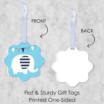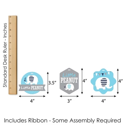 Blue Elephant Gift Tag Toppers INCLUDE 12 sturdy, flat, single-sided tags plus 12 satin ribbon strands for hanging. Each set includes 3 different shapes, with 4 of each shape. Requires some easy assembly. These Birthday Party or Baby Shower tags are a great way to dress up gifts or can be used as trendy party favors! GIFT-PERFECT: Blue Elephant Gift Tag Toppers come assorted, with SIZES varying between 3″ to 4″ inches wide x 3.5″ to 4″ inches high. Give gifts that extra bling by adding these colorful tags to present boxes, cards, or bags. Made of sturdy PVC material with single-sided print, the backs are white and can be used to write personal messages to recipients. EASY ASSEMBLY: Boy Baby Gift Tag Toppers require some easy assembly. String 1 ribbon through top hole of each gift tag topper and form knot at desired hanging length. Trim down extra ribbon. Holes are pre-cut for your convenience. HIGH-QUALITY FAVORS: Blue Elephant Gift Tag Toppers are professionally printed on sturdy PVC Material with single-sided print. They are individually inspected and carefully packaged by hand, with coordinating satin ribbon. MADE IN THE USA: Blue Elephant Gift Tag Toppers are designed and manufactured at our Wisconsin facility using materials that are Made in the USA.