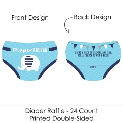 Blue Elephant – Diaper Shaped Raffle Ticket Inserts INCLUDES 24 cards with instructions for a diaper raffle game and space for guests to write their name. FUN BABY SHOWER GAME: Baby Shower guests will love playing a diaper raffle – it’s easy to do and helps Mommy-to-Be stock up on diapers before her baby arrives. Diaper raffle tickets are a great addition to any baby shower invitations. Add them to invites for traditional baby shower or a baby sprinkle, give them to Dad’s friends for a diaper party or host an event with coworkers. HOW TO PLAY: Add a Diaper Raffle Ticket to each baby shower invitation, telling guests to bring one package of diapers and the Diaper Raffle Ticket with their name on it. At the shower, have a basket at the gift table and have guests to drop their Diaper Raffle Tickets into it. Have a drawing for the prize winner. You can have one grand prize winner or numerous little ones. Either way, a diaper raffle is a fun way to get everyone in on the games and an easy way to get the parents ready for baby! HIGH-QUALITY PARTY SUPPLIES: Diaper Shaped Raffle Ticket Inserts are professionally printed on heavy-duty cardstock paper with a photo-like shine. They are individually inspected and carefully packaged by hand. This fun baby shower or gender reveal party game will arrive ready to use at your party. Each diaper shaped raffle ticket measures 4″ wide x 2.75″ tall. MADE IN THE USA: Blue Elephant – Diaper Shaped Raffle Ticket Inserts – Baby Shower Game is designed and manufactured at our Wisconsin facility using materials that are Made in the USA.
