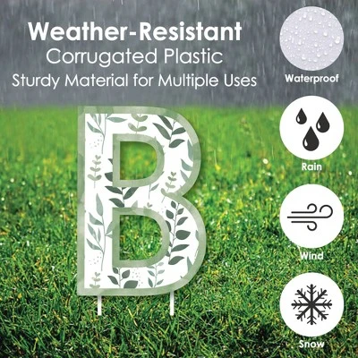 Outdoor BABY Lawn Decorations INCLUDES Baby Shower Party yard decorations: Yard letters to spell “BABY and two sturdy stakes per sign for outdoor use. PERFECT FOR ANY LOCATION! Boho Botanical Baby yard letters SIZE “BABY” Measures 18.25”. Vibrant Greenery Party yard ornaments are easy outdoor Baby Shower Party decorations. Both adults and kids will love these Boho Botanical Baby party supplies. Display in front yards of your home or party venue. EASY TO USE: Greenery Party Outdoor Lawn Decorations are professionally printed and cut, making assembly quick and easy. Simply insert two heavy-duty stakes for letters and shapes; and press into the ground to display. HIGH-QUALITY YARD DECORATIONS: Letters and shaped cut outs are made from durable, corrugated plastic that is waterproof, weather resistant and made for extended outdoor use. Baby Shower Party lawn decor can be displayed in wind, snow and rain without any worry. MADE IN THE USA: Boho Botanical Baby – Yard Sign Outdoor Lawn Decorations are designed and manufactured at our Wisconsin facility using materials that are Made in the USA.