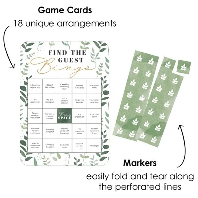 Boho Botanical Bride Bingo Cards and Markers INCLUDES 18 game cards, 18 perforated marker sheets, 1 perforated call sheet, and game instructions. MUST-HAVE PARTY SUPPLY: Bingo is an easy and classic Boho Botanical Bride game that everyone will have fun playing. Bridal Shower or Wedding Party Bingo Cards and Markers give this classic game a fresh look with Boho Botanical Bride playing cards with Wedding Party-related words instead of numbers. HOW TO PLAY: Play traditional bingo rules or play find the guest bingo. Find the guest bingo is played by observing each party guest and marking the space when you find a guest who has a corresponding life event or fact that matches a bingo space on your card. Begin traditional play by the designated bingo leader pulling a caller chip from the bowl. Each guest covers the called word on their card with square marker. Continue until a guest has covered a row in any direction – vertically, horizontally, or diagonally and calls out βBINGO!β. HIGH-QUALITY: Boho Botanical Bride Bingo Cards and Markers are professionally printed and double-sided on sturdy cardstock paper. They are individually inspected and carefully packaged by hand. Each card measures 5β Wide x 7β Tall, perforated marker sheets measure 2.75β Wide x 5β Tall and individual markers measure 0.75β Wide x 0.75β Tall. MADE IN THE USA: Boho Botanical Bride Bingo Game is designed and manufactured at our Wisconsin facility using materials that are Made in the USA.