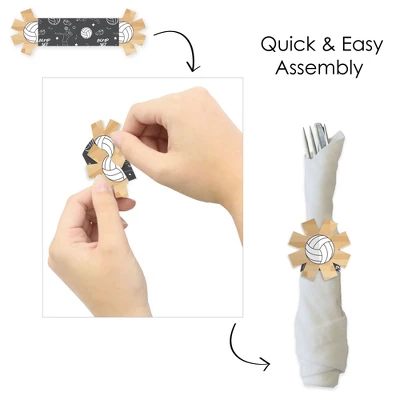 Bump, Set, Spike – Volleyball Napkin Rings includes 24 paper napkin rings with an interlocking tassel-shaped end. Wrap your napkins and cutlery in these paper rings for an elevated look at your Baby Shower or Birthday Party. Tableware Accent: Bump, Set, Spike – Volleyball rings will add a festive flare to your napkins, table linens, and cutlery. From large banquets to small gatherings with loved ones, these napkin rings have that extra charm for a next-level table setup. Easy DIY: Sports Themed napkin holders are a no-fuss solution for your table setting decor and require quick and easy assembly. Start by forming the napkin ring into a circle and attach the tassels by interlocking the slits. Slide the tassels together until the art matches up and insert your napkin and dinnerware. High-Quality Supply: Bump, Set, Spike – Volleyball Napkin Rings are reversible and professionally printed double-sided on sturdy cardstock paper with a photo-like shine. Each paper rings measure 2.25” wide x 2.25” tall when assembled. Napkin Rings arrive flat and will require some easy assembly. Made In The USA: Bump, Set, Spike – Volleyball Napkin Rings are designed and manufactured at our Wisconsin facility using materials that are Made in the USA.