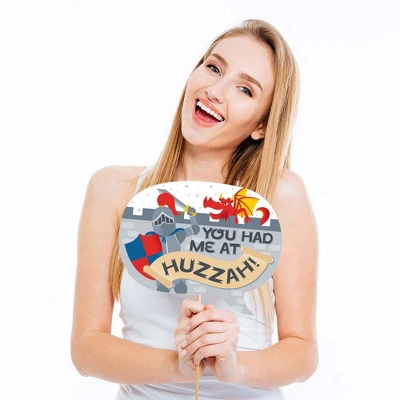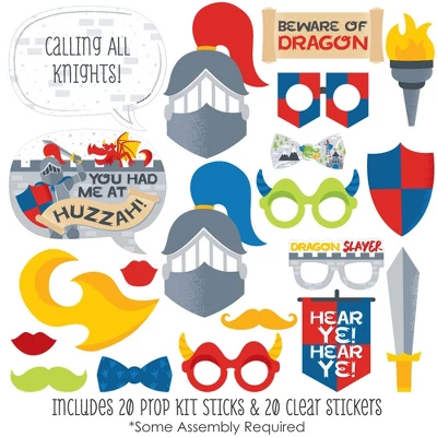 20-Piece medieval or birthday Photo Booth Props Kit INCLUDES 20 Calling All Knights and Dragons photo booth props, 20 sticks and stickers for assembly. EASY ASSEMBLY: Simply attach the printed DIY photo booth props to the sticks with included reinforcing stickers. PERFECT FOR ANY CROWD! Photo booth props are fun party supplies for adults and kids – everyone will love the funny faces on these Calling All Knights and Dragons photo booth props. Take entertaining and shareable party photos of your friends and family while making memories with these funny photo booth props! CASTLE PARTY DECORATIONS: There are many fun ways to use these cute photo booth props! Use as intended at home, school or work and take party photos to share; add them to vases and floral arrangements as a fun medieval or birthday party centerpiece; or accent your medieval or birthday party candy buffet by displaying them in apothecary candy jars! HIGH-QUALITY PARTY SUPPLIES: Calling All Knights and Dragons photo booth props are professionally printed on thick cardstock paper. They will arrive cut out and ready to assemble with the included sticks and stickers. MADE IN THE USA: Calling All Knights and Dragons – Medieval or Birthday Party Photo Booth Props Kit is designed and manufactured at our Wisconsin facility using materials that are Made in America.