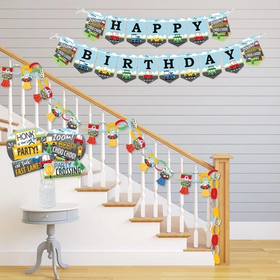 Doterrific Bundle INCLUDES: Bunting Banner “HAPPY BIRTHDAY” Paper Chains Garland 21 Feet, and Funny Photo Booth Props Kit 10-Piece. Style any Birthday Party with coordinating Transportation-themed party supplies. Use Cars, Trains, and Airplanes Doterrific Bundle to create an impressive photo booth backdrop. Please Note: Assembly Required. BUNTING BANNER: Greet your party guests with a Cars, Trains, and Airplanes bunting banner. Assemble the themed pennant flags with included ribbon and hang with the included wall mount adhesives. Each pennant measures 5.5″ wide x 8.5″ high. Satin ribbon measures 24 feet long and 3/8″ wide. Hang at the entrance of your event, at the gift table, or display as a background for photo ops. PAPER CHAINS: Cars, Trains, and Airplanes paper chains decoration kit will arrive flat and is easy enough for the whole family to assemble. The heavy-duty paper tassels give our paper chains a unique flair. Dress up all areas of your Transportation party with paper chains. For decorating fun, wrap paper chains down a staircase railing, hang above doorways, or use as a photo booth backdrop. PHOTO PROPS: 10-Piece Funny Cars, Trains, and Airplanes photo booth props include 4 speech bubble shapes (10.25″ wide x 8.25″ tall), 6 arrow shapes (10.5″ wide x 4.5″ tall), and 10 dowel sticks (12″ tall). For easy assembly, adhesive dots and stickers are included. Capture memorable photos of friends and family as they laugh at the funny-themed sayings. Use photo props and dowels as centerpieces or scatter props throughout your event. MADE IN THE USA: Cars, Trains, and Airplanes Doterrific Bundle is designed and manufactured at our Wisconsin facility using materials that are Made in the USA. Professionally printed on sturdy cardstock paper with a photo-like shine, our kit parts are individually cut, inspected, and carefully packaged.