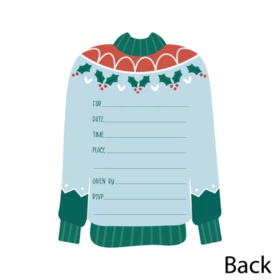 Big Dot Of Happiness Colorful Christmas Sweaters – Shaped Fill-In Invitations – Ugly Sweater Holiday Party Invitation Cards With Envelopes – Set Of 12