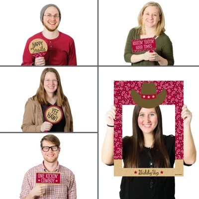 5-Piece Photo Booth Frame and Props Kit INCLUDES 1 Cowboy photo booth picture frame prop, 2 round photo booth props and 2 rectangle photo booth props – Great for a birthday party or baby shower. Take entertaining and shareable party photos of your friends and family while making memories with funny Western photo booth props! PERFECT FOR ANY CROWD! Photo booth props are fun cowboy party supplies for adults and kids – everyone will love posing with cute birthday party or baby shower photo booth props. Photo Frame Props Kit MEASURES 17 inches x 23 inches (Picture Frame), 6 inches x 9.5 inches, including the handle (2 Round Props) and 7 inches x 7 inches, including the handle (2 Rectangle Props). BIRTHDAY PARTY OR BABY SHOWER DECORATIONS: There are many fun ways to use these Cowboy photo booth picture frame props! Style a cute photo booth with a coordinating backdrop for perfect selfies; display photo props around your event for different photo stations; or carry them from guest to guest and be sure to take cute party pics with everyone! HIGH-QUALITY PARTY SUPPLIES: Cowboy birthday party and baby shower photo booth props are professionally printed on durable, corrugated plastic. They will arrive cut out and ready to use. Photo Booth Picture Frame & Props are waterproof and can be used outdoors, in any weather and at any location. MADE IN THE USA: Cowboy – Western Birthday Party or Baby Shower Selfie Photo Booth Picture Frame & Props are designed and manufactured at our Wisconsin facility using materials that are Made in the USA.