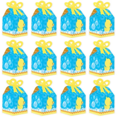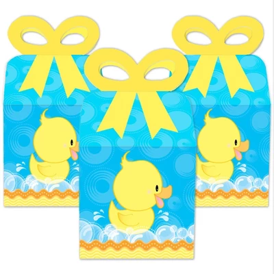 Bow Boxes INCLUDE: 12 Cheerful Ducky Duck-themed square favor gift boxes. Each box SIZE measures 3.5 inches length x 3.5 inches width x 7 inches height. Bow boxes are ideal for small gifts and treats that are under 3.5 inches tall (height for storing items in closed box). When assembled and closed, each box creates a 3D paper bow-shaped top with a square bottom. CUTE GIFT BOXES: This small, closed favor box can be filled with homemade treats (fun cupcake box), party trinkets, or thank you gifts. At the party, have each guest fill their bright blue and yellow splashing Duck bow box with snacks from a candy buffet or use as a party loot box. Guests will have fun guessing what surprise each favor gift box contains. PREMIUM PARTY SUPPLY: Bow boxes are professionally printed and double-sided on heavy-duty cardstock paper, with a photo-like shine. They are hand-folded, individually inspected, and then carefully packaged. EASY ASSEMBLY: Cheerful Duck bow boxes will arrive flat. Each bow box has crease lines and numbered tabs for easy folding. Finish the DIY assembly by interlocking top of box to create a three-dimensional bow. Packaging will include assembly instructions. MADE IN THE USA: Bright blue and yellow splashing Duck Baby Shower or Birthday Party bow boxes are designed and manufactured at our Wisconsin facility using materials that are Made in the USA.