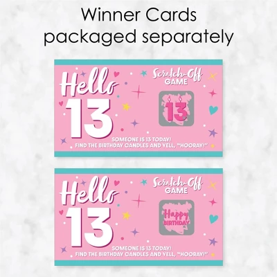 Girl 13th Birthday Scratch-Off Cards INCLUDES 22 birthday party game cards: 20 “loser” cards and 2 “winner” cards. FUN PARTY GAME: Girl 13th Birthday scratch-off cards will be enjoyed by all party guests of all ages. Each game card measures 2.75″ tall x 4.75″ wide. Winner and loser game cards are packaged separately so it is easy to pre-select the game winners if you choose. 3 WAYS TO PLAY: Simple – Greet guests as they arrive and hand them a scratch-off card. Quick – Display one scratch-off card at each place setting and have guests play before eating. Favorite – Give scratch-off cards out as mini prizes during other party games. The winning scratch off card(s) gets a grand prize. HIGH-QUALITY PARTY SUPPLIES: Girl 13th Birthday Scratch-Off Cards are professionally printed on heavy-duty cardstock paper with a photo-like shine. They are individually inspected and carefully packaged by hand, with winner cards and loser cards clearly marked. This fun birthday party game will arrive ready to use at your party. MADE IN THE USA: Girl 13th Birthday – Birthday Party Game Scratch Off Cards are designed and manufactured at our Wisconsin facility using materials that are Made in the USA.