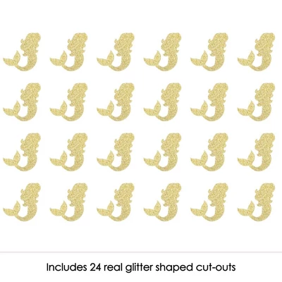 Gold Glitter Mermaid Confetti INCLUDES 24 no-mess real gold glitter cut-out shape for a baby shower, bachelorette or birthday party. Shape gold confetti is cut from no-mess glitter paper, making them perfect for table decorations and ensuring easy clean up. PERFECT PARTY DECORATIONS: Gold Glitter cut-out Mermaid come in a set of 24 and MEASURE 2.5 inches x 2.5 inches. Real gold glitter shape cut outs look great scattered down buffet and dining tables, hole-punched and tied as tags on party favors or adhered to glassware and candy buffet jars as baby shower, bachelorette or birthday decorations. EASY TO USE: No-mess Mermaids cut out glitter confetti will help you complete all your DIY party ideas! Gold Glitter No-Mess Real Gold Glitter Cut-Out Shape Confetti will arrive cut and ready to use at your baby shower, bachelorette or birthday celebration. HIGH-QUALITY: Gold Glitter Cut-Out Mermaids are professionally cut from heavy-duty, cardstock glitter paper. They are then inspected for quality while being carefully hand-packed in sets of 24. Gold glitter Mermaids confetti uses NO-MESS Real Gold Glitter Paper with white reverse side, eliminating glitter flake while maximizing bling effect!