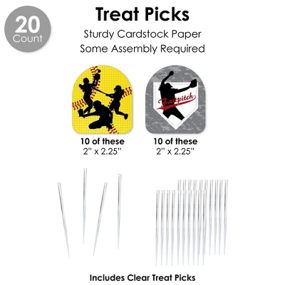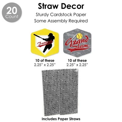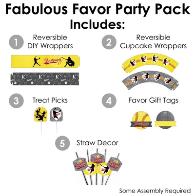 DIY WRAPPERS includes: 20 total reversible wrappers that are 10.75” wide x 2” tall. When wrapped, they can accommodate favors 1.75” to 2.5” in diameter. Professionally printed double-sided on sturdy cardstock paper, these wrappers for a Baby Shower or Birthday Party are easy to secure on a variety of items like beverage containers, vases, napkins, and more by wrapping around and sliding the tab into the appropriate slit. CUPCAKE WRAPPERS includes: 20 total cupcake wrappers that adjust to fit 1.75” – 2.5” wide x 1.75” tall. Professionally printed double-sided on sturdy cardstock paper, Grand Slam – Fastpitch Softball cupcake wrappers will fit over cupcake liners on standard and medium-sized cupcakes and are reversible for a coordinated look. TREAT PICKS includes: 20 total shaped cut-outs – 2” wide x 2.25” tall and clear treat picks – 4” tall. Sports Themed paper cut-outs come in 2 designs. Assembly stickers are included for easy DIY required assembly. FAVOR GIFT TAGS includes: 20 total gift tag paper cut-outs – 3.5” wide by 2.75” tall and satin ribbon. Professionally printed double-sided on sturdy cardstock paper, write a special message in the blank space on the back side of gift tags. STRAW DECOR includes 20 total shaped cut-outs with 2 designs -10 count each, size 2.25” wide by 2.25” tall and chevron striped paper straws – 7.75” tall. For easy assembly, create your stylish drinks by attaching Sports Themed shaped cut-outs to paper straws with clear stickers included. Favor party pack is designed and manufactured at our Wisconsin facility using materials that are Made in the USA.