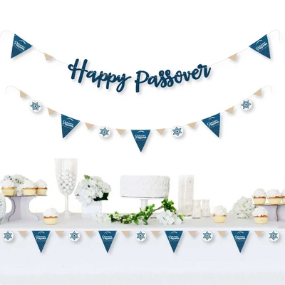 Passover Letter Banner Decoration INCLUDES Happy Passover letters, 36 banner pennant pieces, and cord for hanging. Passover banner look great at any venue! VARIETY OF DESIGNS & SIZES! Happy Passover Letter Banner features coordinating pennant pieces and script letters. Decorate your event with 9 large triangle pennants (6.25″x 7.5″); 9 circle pennants (3.75″x 3.75″); 18 small triangle pennants (3.25″x 2″); and Happy Passover letters in script style lettering. Easily string them together with the included 10 yards of satin cording. PARTY DECORATIONS: A Passover Bunting Banner is an easy way to decorate for your party and bring your Happy Easter theme to life. Hang at the entrance of your Pesach party, over the food table or candy buffet, and even by the gift table. PREMIUM STAR OF DAVID PARTY SUPPLIES: Happy Passover Letter Banner is professionally printed on sturdy cardstock paper. Each pennant is individually inspected then carefully packaged by hand. Happy Passover letter banners requires some easy assembly. Simply string the cord through the holes on each letter piece and add triangle and circle pennants to complete the banner. Create multiple rows by cutting the cord to your desired length or hang as one long banner. MADE IN THE USA: Passover – Party Letter Banner Decoration is designed and manufactured at our Wisconsin facility.