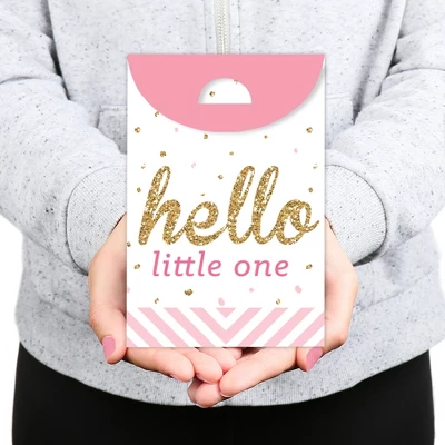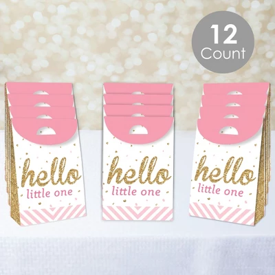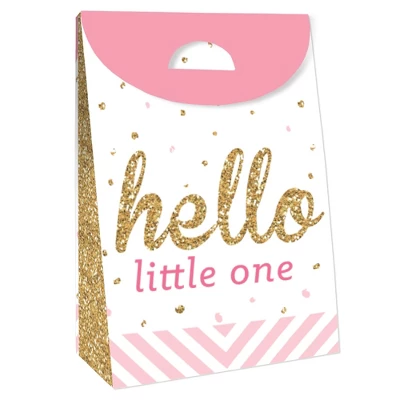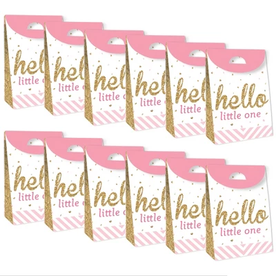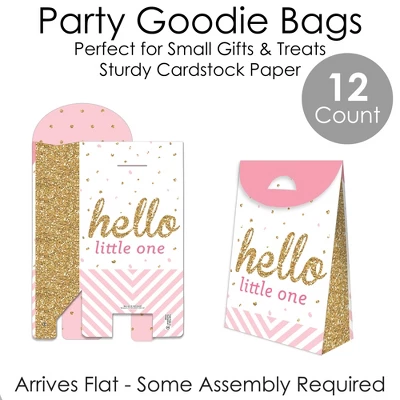 Hello Little One Party Goodie Bag INCLUDES 12 gift favor bags that are perfect for a Baby Shower. Each bag SIZE measures 4.75” length x 2.5” wide x 7” tall. Party Goodie Bags are excellent for small gifts, treats, and other party favors. FANTASTIC FAVORS: Gather all the goodies to place inside these fun gift bags! Fill the party goodie bags with an assortment of gifts like bite-sized candies, small toys, trinkets, and thank you party favors! Delight your guests when you surprise them with these Hello Little One swag bags. EASY ASSEMBLY: Party goodie bags will arrive flat. Each favor bag includes creased lines and numbered tabs for easy folding. To close each bag, fold over the top flap and secure it by inserting the tab inside the slit. Packaging will also include assembly instructions. HIGH-QUALITY SUPPLY: Pink and Gold Party Goodie Bags are professionally printed double-sided on heavy-duty cardstock paper with a photo-like shine. They are individually inspected and then carefully packaged by hand. MADE IN THE USA: Hello Little One Party Goodie Bags are designed and manufactured at our Wisconsin facility using materials that are Made in the USA.