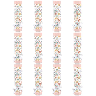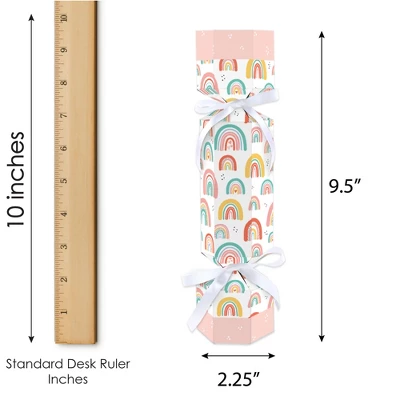 Big Dot of Happiness Hello Rainbow Cracker Boxes includes 12 DIY party favor boxes and coordinating satin ribbon. No-snap crackers are a unique favor box that will make your Baby Shower or Birthday Party unforgettable! Decorative Table Favors: Non-snap Hello Rainbow party crackers are a playful and whimsical addition to your celebration. These fill-your-own decorative boxes are perfect for fun-sized candies, tiny trinkets, and small party favors. Easy Assembly: To assemble, begin by creasing along the scored line to create the hexagonal shape. Tightly tie a ribbon around the bottom diamond cutout section, and then fill your own goodies inside! To close, secure a ribbon around the top section. High-Quality Supply: Hello Rainbow crackers are professionally printed double-sided on heavy-duty cardstock paper with a photo-like shine. When assembled, Hello Rainbow party crackers measure 2.25″ wide by 9″ tall. Cracker favor boxes will arrive flat with some assembly required. Candy not included. Made In The USA: Hello Rainbow DIY cracker boxes are designed and manufactured at our Wisconsin facility using materials that are Made in the USA.