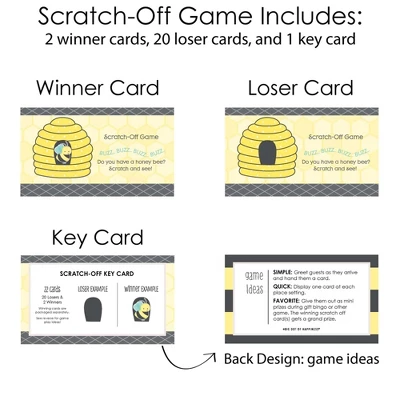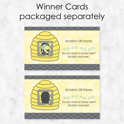 Honey Bee Scratch-Off Cards INCLUDES 22 baby shower or birthday party game cards: 20 “loser” cards and 2 “winner” cards. FUN PARTY GAME: Honey Bee scratch-off cards will be enjoyed by baby shower or birthday party guests of all ages. Each game card measures 2.75″ tall x 4.75″ wide. Winner and loser game cards are packaged separately so it is easy to pre-select the game winners if you choose. 3 WAYS TO PLAY: Simple – Greet guests as they arrive and hand them a scratch-off card. Quick – Display one scratch-off card at each place setting and have guests play before eating. Favorite – Give scratch-off cards out as mini prizes during other party games. The winning scratch off card(s) gets a grand prize. HIGH-QUALITY PARTY SUPPLIES: Honey Bee Scratch-Off Cards are professionally printed on heavy-duty cardstock paper with a photo-like shine. They are individually inspected and carefully packaged by hand, with winner cards and loser cards clearly marked. This fun baby shower or birthday party game will arrive ready to use at your party. MADE IN THE USA: Honey Bee – Baby Shower or Birthday Party Game Scratch Off Cards are designed and manufactured at our Wisconsin facility using materials that are Made in the USA.
