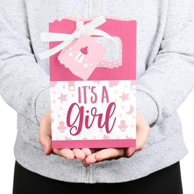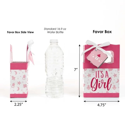 It’s a Girl Favor Boxes INCLUDES 12 pink party favor bags, 12 gift tags and coordinating satin ribbon. Classic favor boxes are a party must-have. Girl theme party supplies are great for a baby shower. It’s a Girl Party Favor Boxes SIZE 4.75 inches wide x 4.75 inches high x 2.25 inches deep (fillable inside space) with a total height of 7 inches, including the handle. The coordinating gift tags and ribbon makes these 12 pink party favor boxes a complete treat bag party kit that everyone will love. GIRL PARTY SUPPLIES: Baby shower favor boxes will hold a variety of treats, prizes and party favors for your guests. Fill them with baked goodies, party trinkets or thank you gifts for adorable It’s a Girl party favors! PREMIUM PARTY FAVOR BOXES: It’s a Girl party favor boxes are professionally printed on heavy-duty cardstock paper with a photo-like shine. They are hand-folded and individually inspected, then carefully packaged. Favor boxes will arrive flat, partially assembled. Finishing assembly is required but it is easy. Once assembled, add the It’s a Girl gift tag with the included ribbon for perfect party favors! MADE IN AMERICA: It’s a Girl – Baby Shower Favor Boxes are designed and manufactured at our Wisconsin facility.