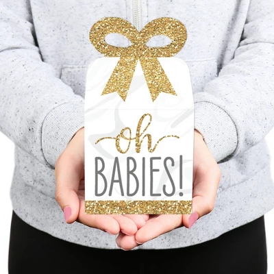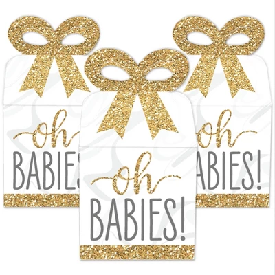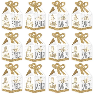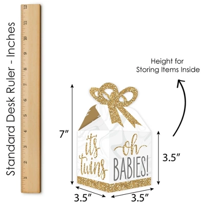 Bow Boxes INCLUDE: 12 It’s Twins-themed square favor gift boxes. Each box SIZE measures 3.5 inches length x 3.5 inches width x 7 inches height. Bow boxes are ideal for small gifts and treats that are under 3.5 inches tall (height for storing items in closed box). When assembled and closed, each box creates a 3D paper bow-shaped top with a square bottom. CUTE GIFT BOXES: This small, closed favor box can be filled with homemade treats (fun cupcake box), party trinkets, or thank you gifts. At the party, have each guest fill their Gold and White “Oh Babies!” bow box with snacks from a candy buffet or use as a party loot box. Guests will have fun guessing what surprise each favor gift box contains. PREMIUM PARTY SUPPLY: Bow boxes are professionally printed and double-sided on heavy-duty cardstock paper, with a photo-like shine. They are hand-folded, individually inspected, and then carefully packaged. EASY ASSEMBLY: It’s Twins bow boxes will arrive flat. Each bow box has crease lines and numbered tabs for easy folding. Finish the DIY assembly by interlocking top of box to create a three-dimensional bow. Packaging will include assembly instructions. MADE IN THE USA: Gold and White “Oh Babies!” Baby Shower bow boxes are designed and manufactured at our Wisconsin facility using materials that are Made in the USA. It’s Twins bow boxes use a No-Mess Glitter Print: Our DIY favor boxes are designed with a printed image of glitter, eliminating glitter flake while maximizing bling effect!