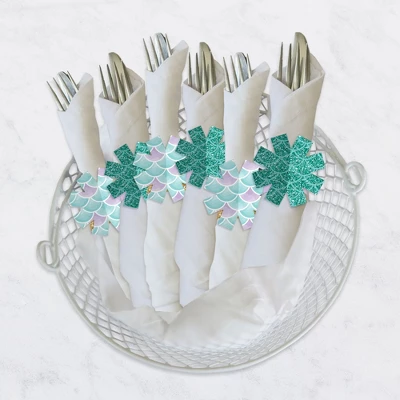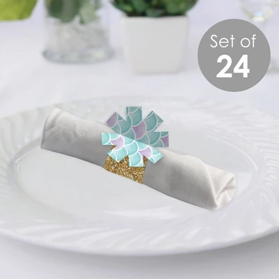Let’s Be Mermaids Napkin Rings includes 24 paper napkin rings with an interlocking tassel-shaped end. Wrap your napkins and cutlery in these paper rings for an elevated look at your Baby Shower or Birthday Party. Tableware Accent: Let’s Be Mermaids rings will add a festive flare to your napkins, table linens, and cutlery. From large banquets to small gatherings with loved ones, these napkin rings have that extra charm for a next-level table setup. Easy DIY: Under The Sea Themed napkin holders are a no-fuss solution for your table setting decor and require quick and easy assembly. Start by forming the napkin ring into a circle and attach the tassels by interlocking the slits. Slide the tassels together until the art matches up and insert your napkin and dinnerware. High-Quality Supply: Let’s Be Mermaids Napkin Rings are reversible and professionally printed double-sided on sturdy cardstock paper with a photo-like shine. Each paper rings measure 2.25” wide x 2.25” tall when assembled. Napkin Rings arrive flat and will require some easy assembly. Made In The USA: Let’s Be Mermaids Napkin Rings are designed and manufactured at our Wisconsin facility using materials that are Made in the USA. Let’s Be Mermaids Napkin Rings uses a No-Mess Glitter Print: Our Napkin Rings are designed with a printed image of glitter, eliminating glitter flake while maximizing bling effect!
