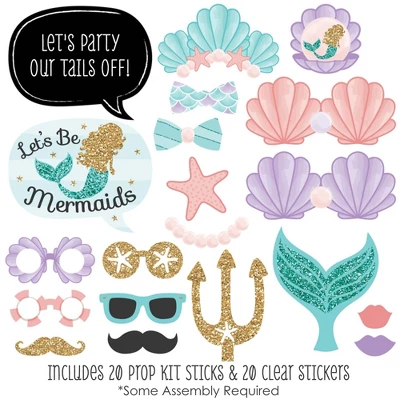 20-Piece Baby Shower or Birthday Party Photo Booth Props Kit INCLUDES 20 Let’s Be Mermaids photo booth props, 20 sticks and adhesives for assembly. EASY ASSEMBLY: Simply attach the printed DIY photo booth props to the sticks with included adhesive and reinforcing stickers. PERFECT FOR ANY CROWD! Photo booth props are fun baby shower or birthday party supplies for adults and kids – everyone will love the funny faces on these Let’s Be Mermaids photo booth props. Take entertaining and shareable party photos of your friends and family while making memories with these stylish photo booth props! BABY SHOWER OR BIRTHDAY PARTY DECORATION IDEAS: There are many fun ways to use these cute photo booth props! Use as intended at home, school or work and take party photos to share; add them to vases and floral arrangements as a fun coral centerpiece; or accent your mermaid theme by displaying them in decorative candy jars! HIGH-QUALITY PARTY SUPPLIES: Let’s Be Mermaids photo booth props are professionally printed on thick cardstock paper. They will arrive cut out and ready to assemble with the included sticks and adhesives. Let’s Be Mermaids photo booth props use a No-Mess Glitter Print: Our photo booth props are designed with a printed image of glitter, eliminating glitter flake while maximizing bling effect! MADE IN THE USA: Let’s Be Mermaids – Photo Booth Props Kit is designed and manufactured at our Wisconsin facility using materials that are Made in the USA.