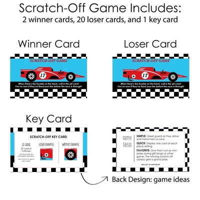 Let’s Go Racing – Racecar Scratch-Off Cards INCLUDES 22 baby shower or birthday party game cards: 20 “loser” cards and 2 “winner” cards. FUN PARTY GAME: Let’s Go Racing – Racecar scratch-off cards will be enjoyed by baby shower or birthday party guests of all ages. Each game card measures 2.75″ tall x 4.75″ wide. Winner and loser game cards are packaged separately so it is easy to pre-select the game winners if you choose. 3 WAYS TO PLAY: Simple – Greet guests as they arrive and hand them a scratch-off card. Quick – Display one scratch-off card at each place setting and have guests play before eating. Favorite – Give scratch-off cards out as mini prizes during other party games. The winning scratch off card(s) gets a grand prize. HIGH-QUALITY PARTY SUPPLIES: Let’s Go Racing – Racecar Scratch-Off Cards are professionally printed on heavy-duty cardstock paper with a photo-like shine. They are individually inspected and carefully packaged by hand, with winner cards and loser cards clearly marked. This fun baby shower or birthday party game will arrive ready to use at your party. MADE IN THE USA: Let’s Go Racing – Racecar – Baby Shower or Race Car Birthday Party Game Scratch Off Cards are designed and manufactured at our Wisconsin facility using materials that are Made in the USA.
