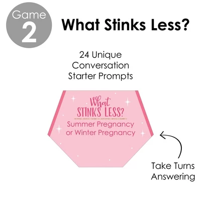- 2-in-1 Game Includes “Dirty Diaper Game” and “What Stinks Less?”