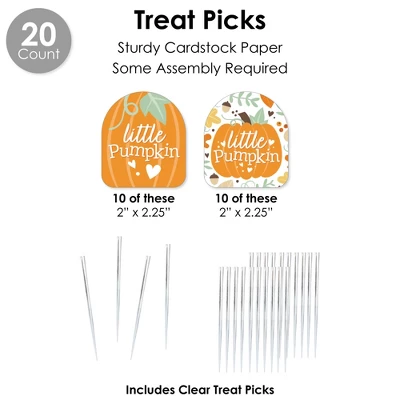 - Treat Picks Includes 20 Shaped Cut-Outs With 2 Designs – 10 Count Each, Clear Treat Picks, and Assembly Stickers