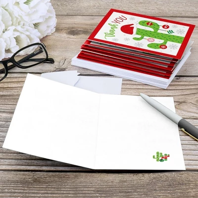 Merry Cactus Thank You Note Card Set INCLUDES 8 fiesta party thank yous and premium white envelopes. Merry Cactus thank you notes are perfect for any event. The cactus theme is great for a Christmas cactus party. Merry Cactus note cards SIZE 5.5 inches by 3.75 inches, folded. The included envelopes measure 5.75 inches by 3.75 inches. The inside of each Merry Cactus thank you card stationery has a fun graphic as well as space to write a special note to friends and family. PREMIUM THANK YOU CARDS: Merry Cactus thank you cards are professionally printed on heavy-duty card stock paper with a photo-like shine. They are hand-folded and individually inspected, then carefully packaged with our exclusive squiggle flap envelopes, making this cactus stationary set a must-have for Christmas cactus party. MADE IN THE USA: Merry Cactus – Party Thank You Cards are designed and manufactured at our Wisconsin facility using materials that are Made in the USA.
