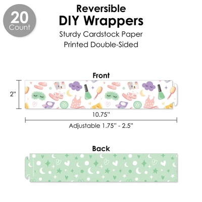DIY WRAPPERS includes: 20 total reversible wrappers that are 10.75” wide x 2” tall. When wrapped, they can accommodate favors 1.75” to 2.5” in diameter. CUPCAKE WRAPPERS includes: 20 total cupcake wrappers that adjust to fit 1.75” – 2.5” wide x 1.75” tall. Pajama Slumber Party cupcake wrappers will fit over cupcake liners on standard and medium-sized cupcakes and are reversible for a coordinated look. Secure cupcake wrappers by sliding the tab into appropriate slit. TREAT PICKS includes: 20 total shaped cut-outs – 2” wide x 2.25” tall and clear treat picks – 4” tall. Self Care & Make Over Themed paper cut-outs come in 2 designs that are a great for styling food being served. Assembly stickers are included for easy DIY required assembly. FAVOR GIFT TAGS includes: 20 total gift tag paper cut-outs – 3.5” wide by 2.75” tall and satin ribbon. Write a special message in the blank space on the back side of Pajama Slumber Party gift tags for a personal touch. STRAW DECOR includes 20 total shaped cut-outs with 2 designs -10 count each, size 2.25” wide by 2.25” tall and chevron striped paper straws – 7.75” tall. All Parts of kit are professionally printed on sturdy cardstock paper. For easy assembly, create your stylish drinks by attaching Pink PJ shaped cut-outs to paper straws with clear stickers included. Favor party pack is designed and manufactured at our Wisconsin facility using materials that are Made in the USA.