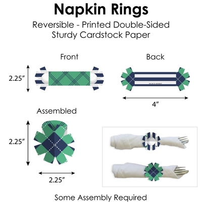 - Napkin Rings: Includes 8 reversible DIY paper rings that measure 2.25” wide by 2.25” tall when assembled