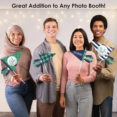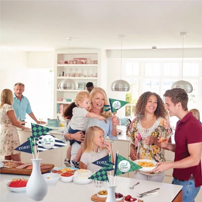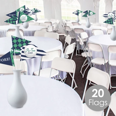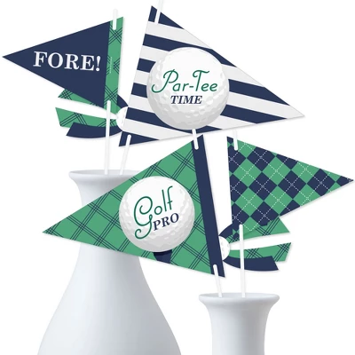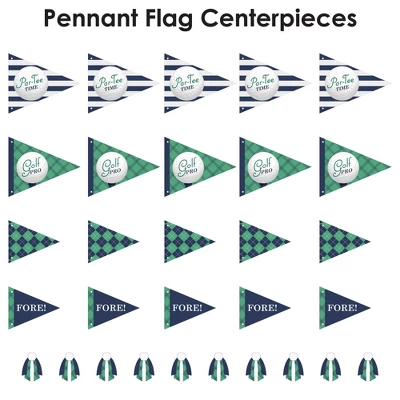 Big Dot of Happiness Par-Tee Time – Golf Pennant Flag Centerpieces include a set of 20 paper triangle flags, 10 paper tassel shapes, paper sticks, and adhesive dots. Pennant centerpieces will help create an impressive look at your Retirement or Birthday Party. Party Decor: Make a statement with the Golf table decorations at your celebration. Insert them into vases or golf arrangements and place them at the center of your tablescape. They are the perfect way to accent your tables and are also a great addition to any photo booth. Easy DIY: Par-Tee Time – Golf flag decorations come with sticks and adhesive dots for easy assembly. Simply insert a stick into the holes on the side of a pennant triangle and attach a paper tassel with an included adhesive dot. Then, begin arranging your centerpiece decorations! High-Quality Supply: Par-Tee Time – Golf flags are professionally printed double-sided on heavy-duty cardstock paper with a photo-like shine. Large pennants measure 8.5 inches wide by 7 inches tall, small pennants measure 6 inches wide by 5 inches tall, and paper tassels measure 3 inches wide by 4 inches tall. Assembled In The USA: Par-Tee Time – Golf Pennant Flag Centerpieces are designed and manufactured at our Wisconsin facility using materials that are Made in the USA – Sticks Made in China.