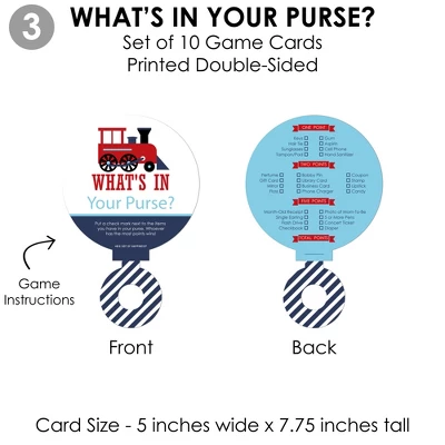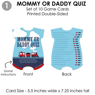 Railroad Party Crossing Gamerific Bundle INCLUDES 4 baby shower games with 10 game cards per each game. BABY SHOWER GAMES: Guests will have fun playing 4 different Baby Shower games: Mommy or Daddy Quiz, Who Knows Mommy Best, What’s in Your Purse, and Oh Baby! Each game is shaped like popular baby items: baby bodysuit, diaper, baby rattle, and baby bottle. HOW TO PLAY: Each game card is printed with easy-to-follow game instructions. For added fun, make each game extra competitive by adding a time limit and offering a prize to the winning party guest. HIGH-QUALITY: Steam Train Baby Shower Games are professionally printed and double-sided on sturdy cardstock paper. They are individually inspected and carefully packaged by hand. This fun baby shower game set will arrive ready to play. MADE IN THE USA: Railroad Party Crossing Baby Shower Gamerific Bundle is designed and manufactured at our Wisconsin facility using materials that are Made in the USA.