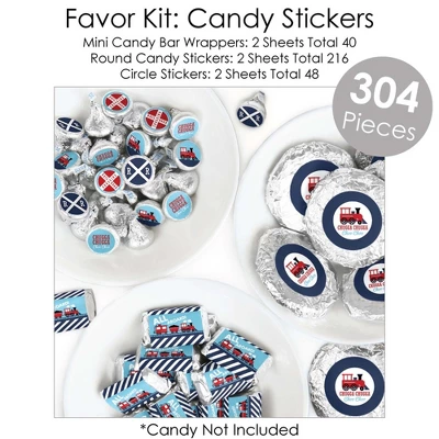 - Favor Kit: Candy Stickers – Includes Mini Candy Bar Wrappers, Round Candy Stickers, and Circle Stickers