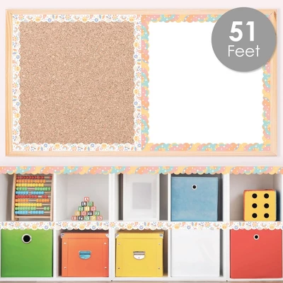 Retro Pastel Bulletin Board Borders INCLUDES a set of 40 scalloped trim decoration that will fit a standard classroom bulletin board. The reversible borders come with a front and back design and will have a seamless transition between the border pieces when placed next to each other. Vibrant Accent: Create a playful atmosphere when you use the groovy borders with your bulletin board display. These must-have schoolroom decorations are perfect for creating a coordinated yet fun look that will have students in the mood to learn. Classroom Essential: The 70s themed decorations are an easy way to brighten up your room. Easily attach the pieces to your bulletin board using tape or staples. You can also use the classroom borders to frame interior windows, doors, shelves, and more! For an exciting appearance, you can mix and match the designs! High-Quality Supply: The bulletin board borders are printed double-sided on quality cardstock paper. Each piece SIZE 15.25 inches wide by 2.75 inches tall for a total length of 51 feet. With proper care, the border trims can be used more than once. Made In The USA: Retro Pastel Bulletin Board Borders are designed and manufactured at our Wisconsin facility using materials that are Made in the USA.