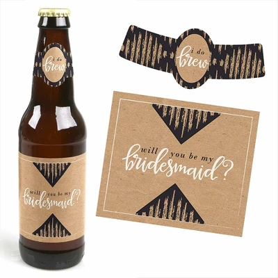 Rustic Kraft Beer Gift Set INCLUDES 6 beer bottle sticker labels & 6 bottle neck labels in the rustic brown and black theme, as well as 1 six-pack carrier with 4 Will You Be My Bridesmaid stickers for decoration. Will You Be My Bridesmaid Beer bottle stickers each SIZE 3.5″ wide x 3″ tall, perfect for standard beer bottles or similarly sized soda bottles; Beer collar neck labels measure 3.5″ long x 1.5″ wide at the center. Beer bottle labels are quick to apply and will give your Rustic Kraft gift a personal touch! HIGH QUALITY PARTY SUPPLIES: Rustic Kraft beer bottle labels are professionally printed on a sticker paper with a glossy coating. They are waterproof and can be used on bottles that will be chilled, just apply prior to chilling. Use the beer kit as the perfect Will You Be My Bridesmaid gift for an impressive, coordinated display. EASY TO USE: Prepare your beverage bottles by ensuring they are room temperature. Removing the original bottle label is not necessary but is preferred. Carefully peel one Will You Be My Bridesmaid sticker label from the backing and adhere to a bottle, starting at the edge and rolling to the opposite edge. Add the bottle neck label and place the completed bottle into the kraft paper carrier. Complete the beer gift kit by adding the remaining 4 stickers to the sides of the six-pack carrier. MADE IN THE USA: Rustic Kraft – Will You Be My Bridesmaid Beer Bottle Labels and Carrier is designed and manufactured at our Wisconsin facility using materials that are Made in the USA. Please Note: Beer in image is not included.