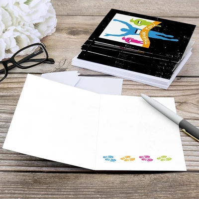 Set The Pace – Running Thank You Note Card Set INCLUDES 8 marathon party thank yous and premium white envelopes. Set The Pace – Running thank you notes are perfect for any event. The track theme is great for a party. Set The Pace – Running note cards SIZE 5.5 inches by 3.75 inches, folded. The included envelopes measure 5.75 inches by 3.75 inches. The inside of each Set The Pace – Running thank you card stationery has a fun graphic as well as space to write a special note to friends and family. PREMIUM THANK YOU CARDS: Set The Pace – Running thank you cards are professionally printed on heavy-duty card stock paper with a photo-like shine. They are hand-folded and individually inspected, then carefully packaged with our exclusive squiggle flap envelopes, making this cross country stationary set a must-have for party. MADE IN THE USA: Set The Pace – Running – Thank You Cards are designed and manufactured at our Wisconsin facility using materials that are Made in the USA.