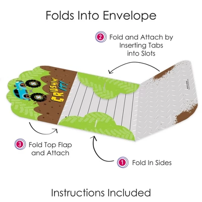 Smash and Crash – Monster Truck Fold and Send Invitations includes a set of 8 Boy Birthday Party invitations. This all-in-one set of invites can be folded into an envelope and comes with clear stickers for secure delivery. Splendid Surprise: Excite your partygoers with these unique and charming invites that turn into envelopes. Monster Jam invitations include fill-in-the-blank space to add your party details. Once assembled, you can directly hand the invites to your recipients or write out the address information on the backside and send your invite via snail mail. Easy Assembly: To transform your invite into an envelope, begin by folding the sides inward. Next, fold and attach the bottom flap by inserting the tabs into the slots of the side flaps. Finally, fold the top flap over and insert its tabs into the slots. Seal your envelope shut using a clear sticker. Practice assembling using the instruction card included. Premium Party Supply: Smash and Crash – Monster Truck party invitations are professionally printed double-sided on quality cardstock paper with a photo-like shine. When folded, invite cards measure 6.25 inches wide x 4.25 inches tall, and when open, cards measure 9.5 inches wide x 11.75 inches tall. Made In The USA: Monster Jam Fold and Send Invitations are designed and manufactured at our Wisconsin facility using materials that are Made in the USA.