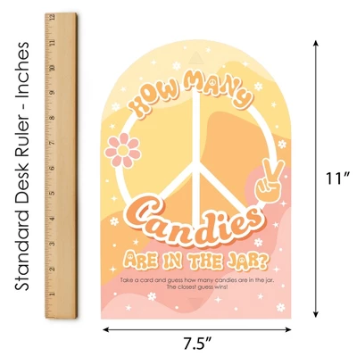 Stay Groovy Candy Guessing Game INCLUDES 1 sign with a built-in stand and 40 guessing cards that will look great at your Boho Hippie Party. Sign measures 7.5″ wide by 11″ tall and cards measure 3.5″ by 2.25″ tall. Candy and jar are not included. HOW TO PLAY: Draw attention to your candy jar with the Stay Groovy Candy Guessing Game! Place the sign and cards next to your candy jar. Guests can then take a card and guess how many candies are in the jar. The closest guess wins! EASY ASSEMBLY: To use, fold the sides of the stand towards the center. Then, fold down the support piece of the stand until it rests in the notches. Finally, display your Retro sign next to your container of candy. HIGH-QUALITY SUPPLY: Stay Groovy Candy Guessing Game is professionally printed double-sided on sturdy cardstock paper with a photo-like shine. They are individually inspected and then carefully packaged by hand. Sign arrives flat with some easy assembly required. MADE IN THE USA: Stay Groovy Candy Guessing Game is designed and manufactured at our Wisconsin facility using materials that are Made in the USA.