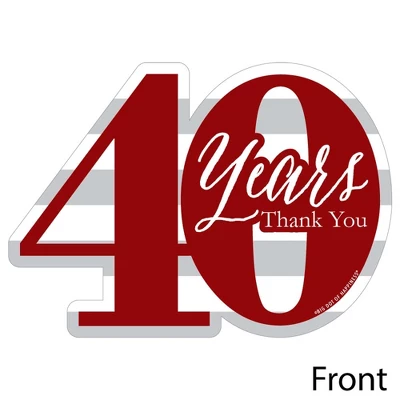 Shaped Thank You Cards Set INCLUDES 12 We Still Do – 40th Wedding Anniversary party thank you cards and 12 premium white envelopes. We Still Do – 40th Wedding Anniversary Shaped Thank You Cards are the perfect end to any event. We Still Do – 40th Wedding Anniversary party thank you note cards SIZE 7 inches by 5 inches. The included envelopes measure to fit 5 inches by 7 inches cards. The back of each We Still Do – 40th Wedding Anniversary party thank you has space to write a personal message of thanks. PREMIUM PARTY THANK YOU CARDS: We Still Do – 40th Wedding Anniversary party thank you cards are professionally printed on heavy-duty cardstock paper with a photo-like shine. They are individually inspected, then carefully packaged with our exclusive squiggle flap envelopes, making this We Still Do – 40th Wedding Anniversary stationary set a must-have for any anniversary party. MADE IN THE USA: We Still Do – 40th Wedding Anniversary Party Thank You Cards are designed and manufactured at our Wisconsin facility using materials that are Made in America. Fortieth Anniversary Thank You Cards use a No-Mess Glitter Print: Our invitations are designed with a printed image of glitter, eliminating glitter flake while maximizing bling effect!