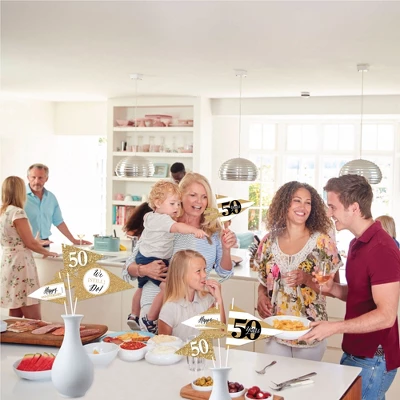 Big Dot of Happiness We Still Do – 50 Wedding Anniversary Pennant Flag Centerpieces include a set of 20 paper triangle flags, 10 paper tassel shapes, paper sticks, and adhesive dots. Pennant centerpieces will help create an impressive look at your Anniversary Party. Party Decor: Make a statement with the Gold table decorations at your celebration. Insert them into vases or Gold arrangements and place them at the center of your tablescape. They are the perfect way to accent your tables and are also a great addition to any photo booth. Easy DIY: We Still Do – 50 Wedding Anniversary flag decorations come with sticks and adhesive dots for easy assembly. Simply insert a stick into the holes on the side of a pennant triangle and attach a paper tassel with an included adhesive dot. Then, begin arranging your centerpiece decorations! High-Quality Supply: We Still Do – 50 Wedding Anniversary flags are professionally printed double-sided on heavy-duty cardstock paper with a photo-like shine. Large pennants measure 8.5 inches wide by 7 inches tall, small pennants measure 6 inches wide by 5 inches tall, and paper tassels measure 3 inches wide by 4 inches tall. Assembled In The USA: We Still Do – 50 Wedding Anniversary Pennant Flag Centerpieces are designed and manufactured at our Wisconsin facility using materials that are Made in the USA – Sticks Made in China. We Still Do – 50 Wedding Anniversary Pennant Flag Centerpieces uses a No-Mess Glitter Print: Our Paper Pennant Flags are designed with a printed image of glitter, eliminating glitter flake while maximizing bling effect!