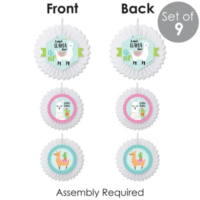 Whole Llama Fun Paper Fans INCLUDES 9 Paper Fans, 18 Shaped Cut-Outs, and Assembly Stickers. Easy set up with all the necessary items included. These decorative fans will surely make your next Baby Shower or Birthday Party memorable. FESTIVE FUN: Colorful Fiesta Llama Paper Fans Tissue Decoration Kit are versatile in use for any Baby Shower or Birthday Party. You can hang them from the ceiling, on the walls, or over a mantelpiece. EASY DIY ASSEMBLY: Whole Llama Fun Paper Fans require some assembly before use. Start by removing the plastic strip from the tape. Unfold the fan, pressing its two ends together firmly to form a circle. Adhere a shaped cut-out using assembly stickers in the center. Use the attached string to hang the decoration. PREMIUM DECOR: Shaped cut-outs featured in the Colorful Fiesta Llama Paper Fans Tissue Decoration Kit are professionally printed on heavy-duty paper with a photo-like shine. All items are individually inspected and carefully packaged. Fans arrive flat and require easy assembly. MADE IN THE USA: Whole Llama Fun Paper Fans are designed and manufactured at our Wisconsin facility using materials that are Printed in the USA – Fans Made in China.