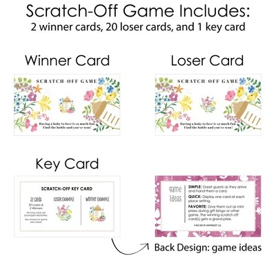 Big Dot of Happiness Boho Flowers Scratch-Off Cards INCLUDES 22 Boho Floral Baby Shower game cards: 20 “loser” cards and 2 “winner” cards. FUN PARTY GAME: Wildflowers Baby scratch-off cards will be enjoyed by Boho Floral Baby Shower guests of all ages. Each game card measures 2.75″ tall x 4.75″ wide. Winner and loser game cards are packaged separately so it is easy to pre-select the game winners if you choose. 3 WAYS TO PLAY: Simple – Greet guests as they arrive and hand them a scratch-off card. Quick – Display one scratch-off card at each place setting and have guests play before eating. Favorite – Give scratch-off cards out as mini prizes during other party games. The winning scratch off card(s) gets a grand prize. HIGH-QUALITY PARTY SUPPLIES: Floral Greenery Scratch-Off Cards are professionally printed on heavy-duty cardstock paper with a photo-like shine. They are individually inspected and carefully packaged by hand, with winner cards and loser cards clearly marked. This fun Boho Floral Baby Shower game will arrive ready to use at your party. MADE IN THE USA: Wildflowers Baby Boho Floral Baby Shower Game Scratch Off Cards are designed and manufactured at our Wisconsin facility using materials that are Made in the USA.